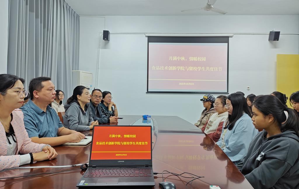 金秋送爽,丹桂飘香,10月6日上午,食品技术创新学院举办“月满中秋、情暖校园”师生座谈会,为假期留校的学生送去月饼、水果等,共度中秋佳节。学校党委委员、纪委书记刘杏茹,学工部副部长张二霞,食品技术创新学院党总支书记王平岗、院长陈冰、值班领导和辅导员代表参加了座谈会。