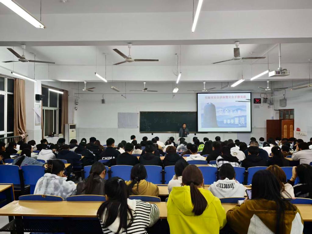 为全面加强校园实验室安全管理,提升广大师生安全防范意识和应急处理能力,营造“安全第一,预防为主”的教学实训环境,食品技术创新学院于2025年10月28日晚在三号教学楼3104教室成功举办了题为“筑牢安全防线,守护实验之路”的实验室安全专题讲座。本次讲座吸引了学院的数百名师生踊跃参加,现场座无虚席、反响热烈。