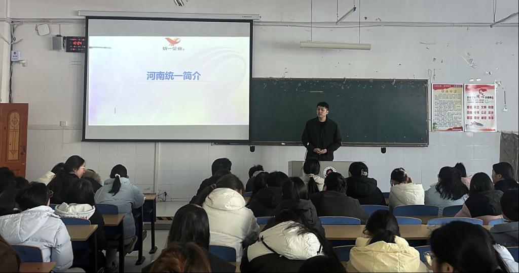 为深化产教融合、搭建优质就业桥梁,助力学子精准择业、高质量就业,12月6日,河南统一企业公司、上海云蒸餐饮管理有限公司等企业走进校园开展招聘宣讲会。本次宣讲会吸引了我院近400名学子到场咨询,现场互动热烈、氛围浓厚。