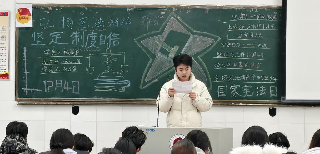 本次团课旨在提升我院学生的法治素养,强化责任担当,各个专业学生积极参与,现场氛围庄重而热烈.本次活动以演讲方式进行,从宪法的历史,核心要义以及在国家治理中的根本保障作用出发,结合生动案例阐述了宪法法律是党和人民意志的集中体现.讲解深入浅出,既有高度又有深度,体现我院学生对此次活动的高度重视.