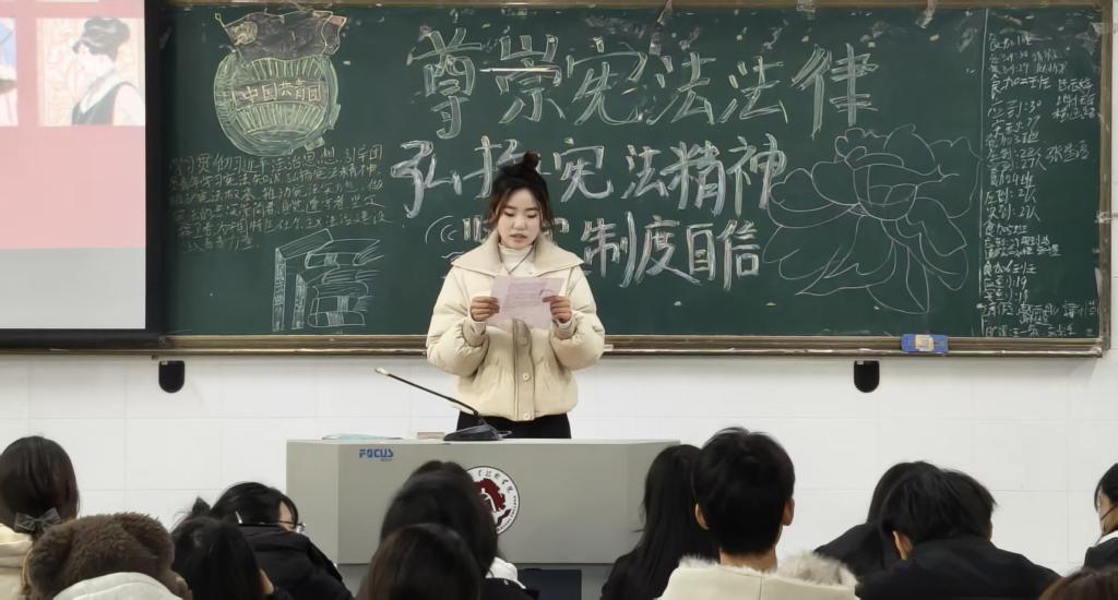 团课尾声,各个班级的主持人对本次活动进行总结,并号召全体参加团课的学生:要以本次团课为契机,持续加强对宪法法律的学习,不断提升法治思维;要自觉传承和弘扬宪法精神,积极参与到宪法活动中去.