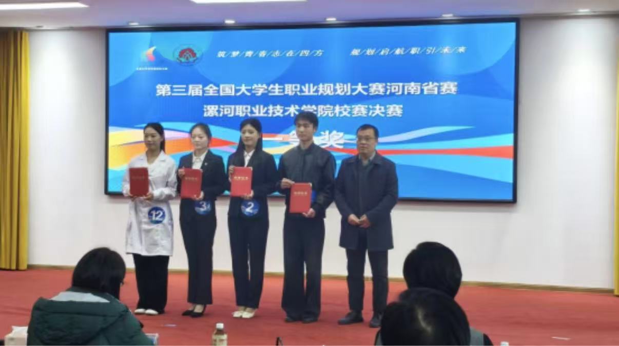 12月30日,第三届全国大学生职业规划大赛河南省赛漯河职业技术学院校赛圆满落幕。食品技术创新学院学生张灿以总分第一名的好成绩荣获一等奖,靖志远和申普同学荣获三等奖,食品技术创新学院被学校授予优秀组织奖。